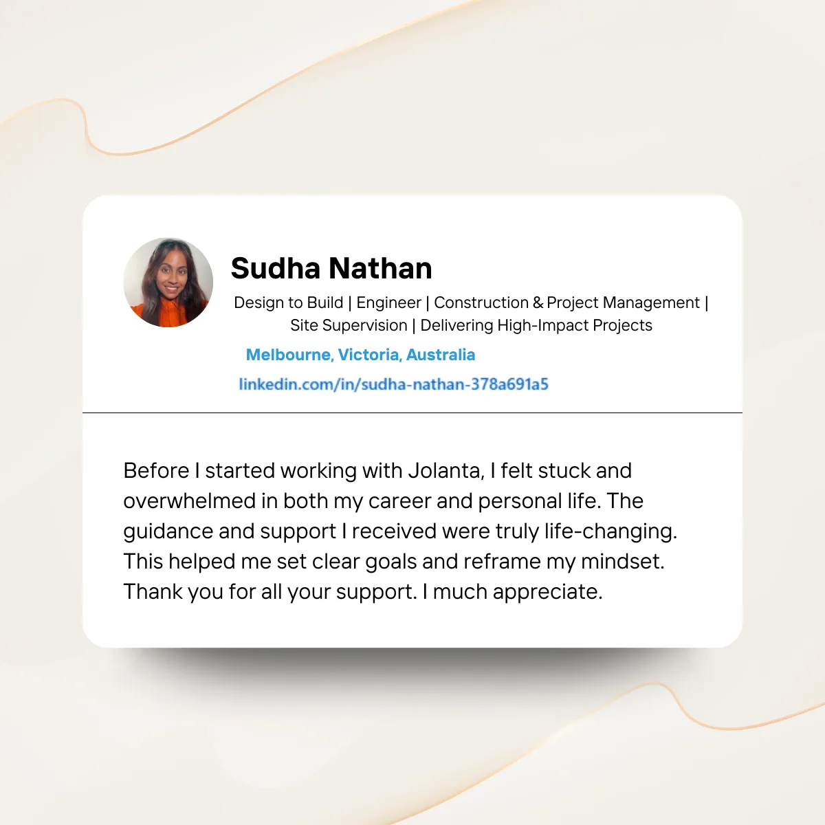 60-Minute Expert Sessions: Accelerate Your Growth with Jolanta's Personalised Guidance for Early-Career Architects. When You work with me, you'll move through this Step-By-Step Process: